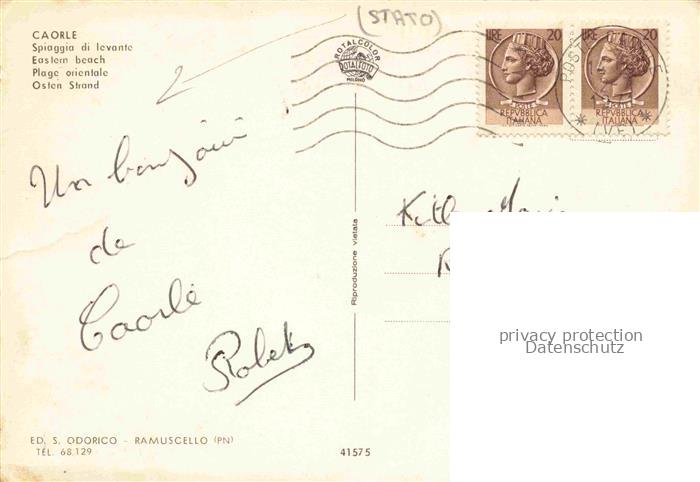 74027113 old postcard Caorle Veneto IT Spiaggio Strand Ansicht vom Meer aus postalisch gelaufen Erhaltung siehe scans [FriedD77] KatCode: 11240