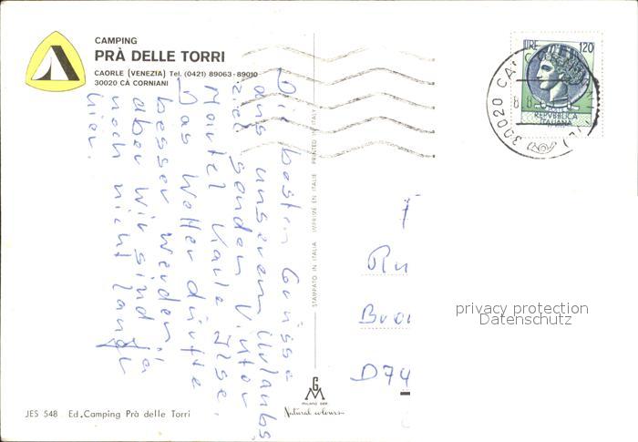 old postcard Caorle Venezia Camping Pra Delle Torri Fliegeraufnahme postalisch gelaufen Erhaltung siehe scans