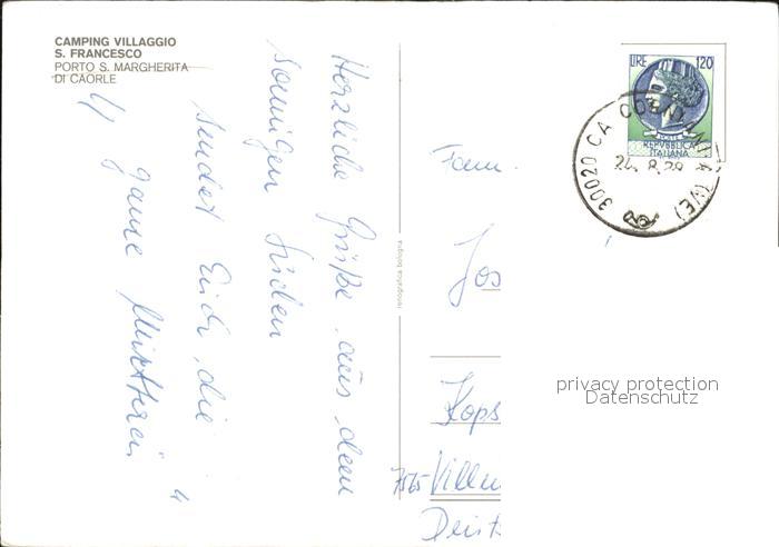 old postcard Caorle Venezia Camping Villaggio San Francesco postalisch gelaufen Erhaltung siehe scans