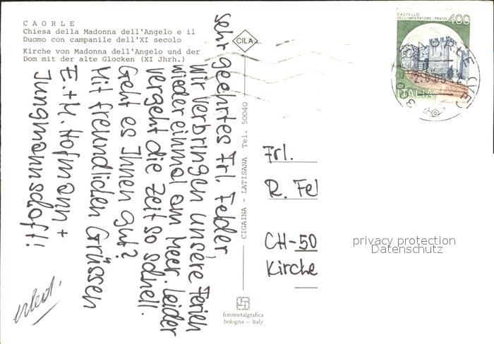 old postcard Caorle Venezia Chiesa della Madonna dell Angelo Duomo Kirche Dom postalisch gelaufen Erhaltung siehe scans