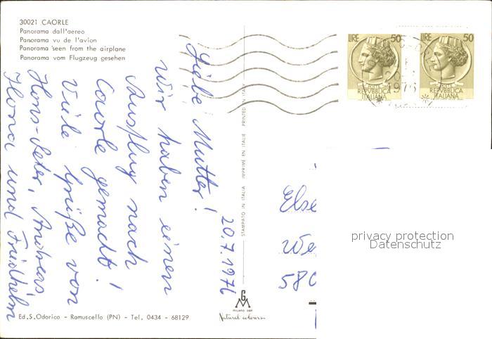 old postcard Caorle Venezia Fliegeraufnahme postalisch gelaufen Erhaltung siehe scans