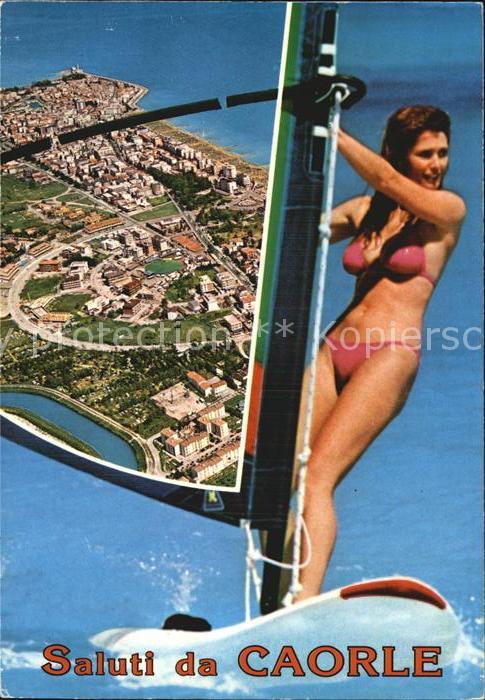 old postcard Caorle Venezia Fliegeraufnahme mit Surferin postalisch gelaufen Erhaltung siehe scans