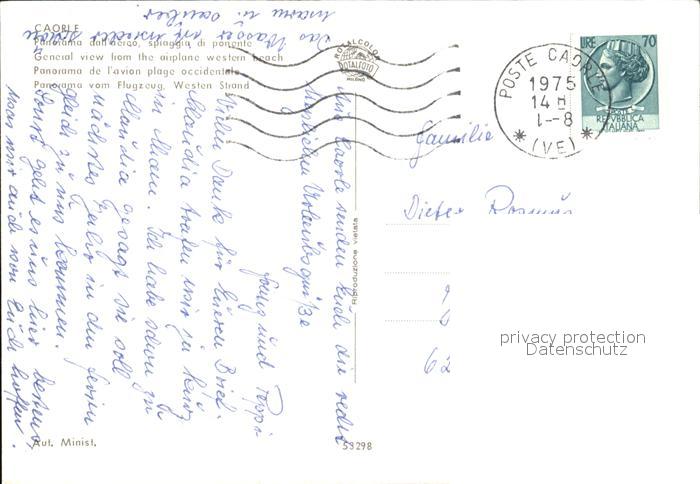old postcard Caorle Venezia Fliegeraufnahme Strand postalisch gelaufen Erhaltung siehe scans