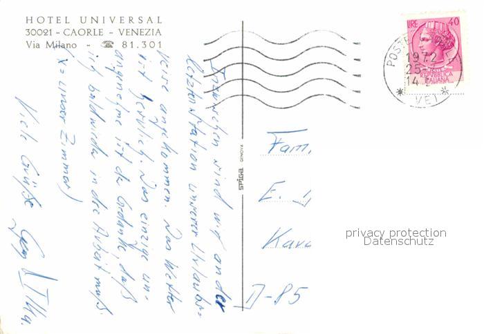 alte Postkarte Caorle Venezia Hotel Universal postalisch gelaufen Erhaltung siehe scans [KathaD81]