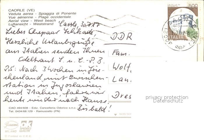 old postcard Caorle Venezia Spiaggia di Ponente veduta aerea postalisch gelaufen Erhaltung siehe scans