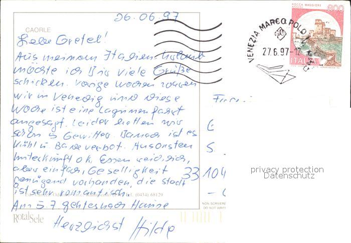 old postcard Caorle Venezia Strand Promenade Turm Hafen postalisch gelaufen Erhaltung siehe scans