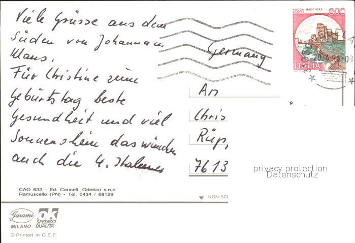 old postcard Caorle Venezia Tennisplatz Strand Markt postalisch gelaufen Erhaltung siehe scans