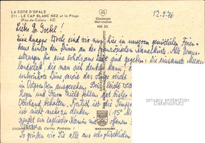 12230409 Cap Blanc Nez et la Plage vue aerienne postalisch nicht gelaufen Erhaltung siehe scans KatCode: 11170062662193