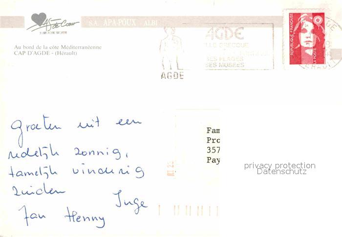 12664441 carte postale Cap-d Agde Fliegeraufnahme postalisch gelaufen Erhaltung siehe scans [WerneD78] KatCode: 11170034134003