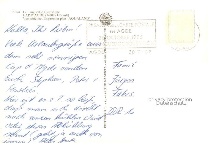 13606728 carte postale Cap-d Agde Fliegeraufnahme postalisch gelaufen Erhaltung siehe scans [LiesaD40] KatCode: 11170034134003