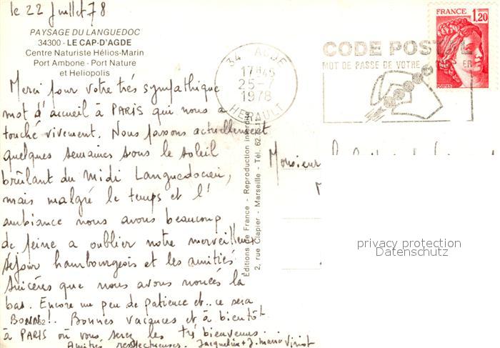 13223051 carte postale Cap-d Agde Fliegeraufnahme Port Ambone et Heliopolis postalisch gelaufen Erhaltung siehe scans [LiesaD40] KatCode: 11170034134003
