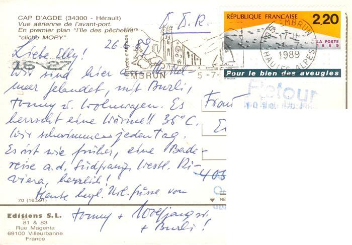 13946024 Cap-d Agde L’avant port Ile des pêcheurs vue aérienne postalisch gelaufen Fliegeraufnahme Erhaltung siehe scans [FriedD77] Fliegeraufnahme carte postale Frie Katcode 11170034134003