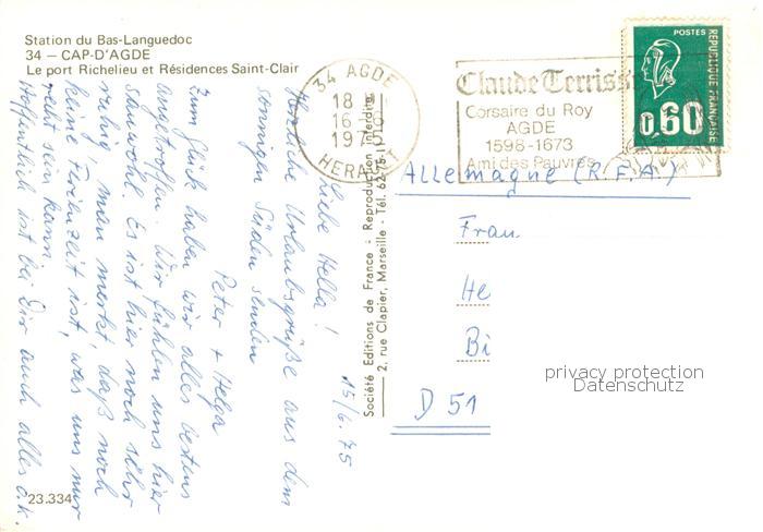 13782503 Cap-d Agde Le port Richelieu et Residence Saint-Clair postalisch gelaufen Erhaltung siehe scans [LiesaD40] carte postale Lies Katcode 11170034134003