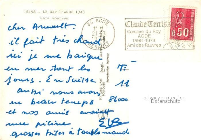 13660654 Cap-d Agde Mare Nostrum postalisch gelaufen Erhaltung siehe scans [WerneD78] carte postale Wern Katcode 11170034134003