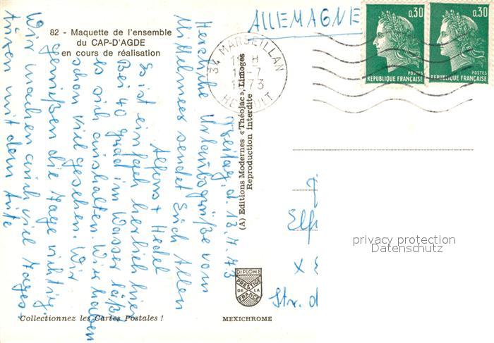 13606372 carte postale Cap-d Agde Model Cours de Realisation postalisch gelaufen Erhaltung siehe scans [LiesaD40] KatCode: 11170034134003