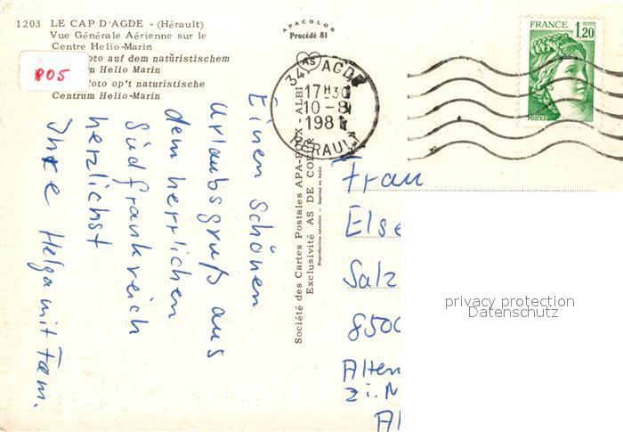 13160941 carte postale Cap-d Agde Vue aerienne Centre Helio Marin postalisch gelaufen Erhaltung siehe scans [WerneD78] KatCode: 11170034134003
