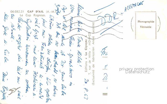 12762211 carte postale Cap-d Ail Le Cap Rognoso postalisch gelaufen Erhaltung siehe scans [AndreD76] KatCode: 11170006206032