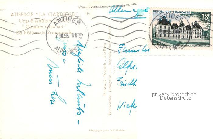 13796953 Cap d Antibes Auberge La Gardiole Rotisserie Provencale Comme chez Soi postalisch gelaufen Erhaltung siehe scans [FriedD77] carte postale Frie Katcode 11170006106004
