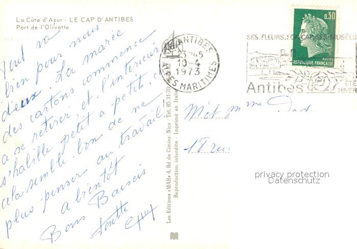 13579031 carte postale Cap d Antibes Port de l’Olivette postalisch gelaufen Erhaltung siehe scans [FriedD77] KatCode: 11170006106004