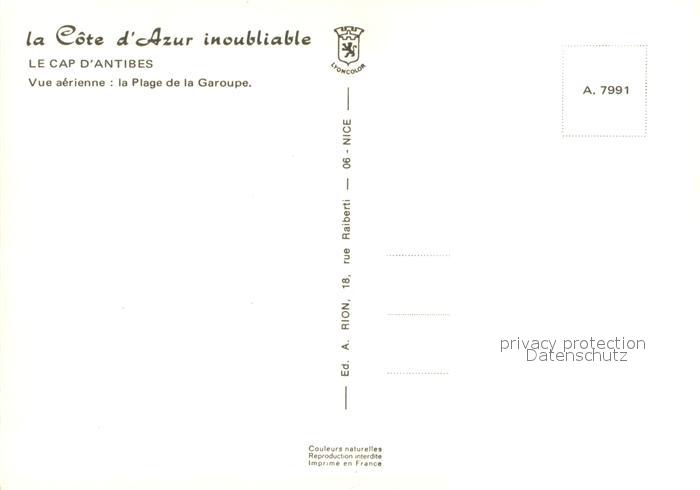 13628098 Cap d Antibes Vue aerienne La Plage de la Garoupe postalisch nicht gelaufen Erhaltung siehe scans [WerneD78] Wern Katcode 11170006106004