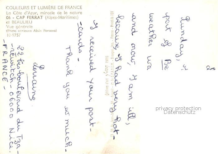 13788985 Cap-Ferrat et Beaulieu Côte d Azur vue aérienne postalisch nicht gelaufen Erhaltung siehe scans [FriedD77] Frie Katcode 11170006206121