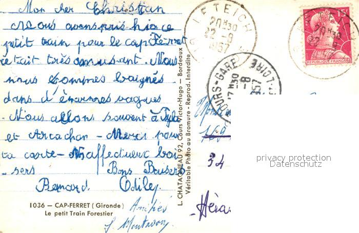 13585185 Cap-Ferret Lege-Cap-Ferret 33 Gironde Petit Train Forestier postalisch gelaufen Erhaltung siehe scans [FriedD77] carte postale Frie Katcode 11170033633236