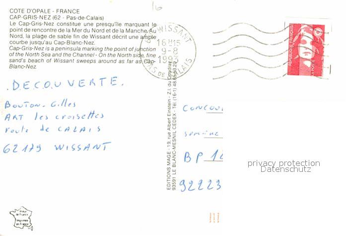 12707366 carte postale Cap Gris-Nez Cap Blanc Nez Wissant Fliegeraufnahme postalisch gelaufen Erhaltung siehe scans [WerneD78] KatCode: 11170062362054