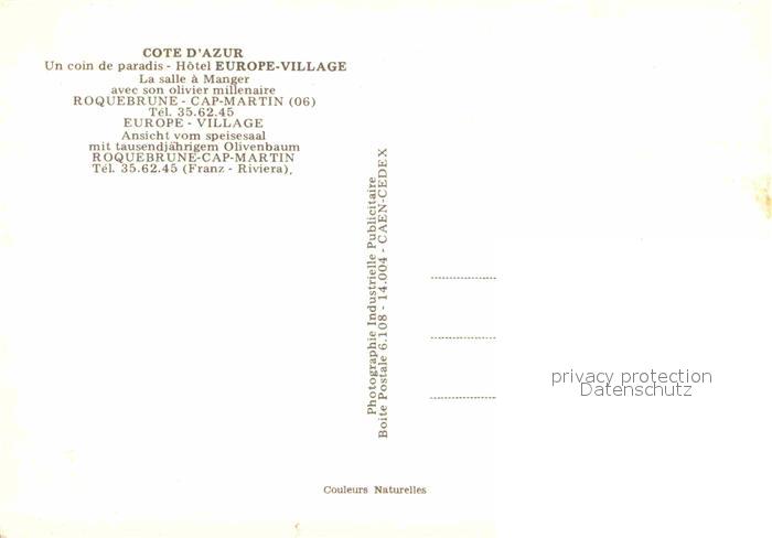 12878469 Cap Martin Hotel Europe Village postalisch nicht gelaufen Erhaltung siehe scans [AndreD76] KatCode: 11170006206104