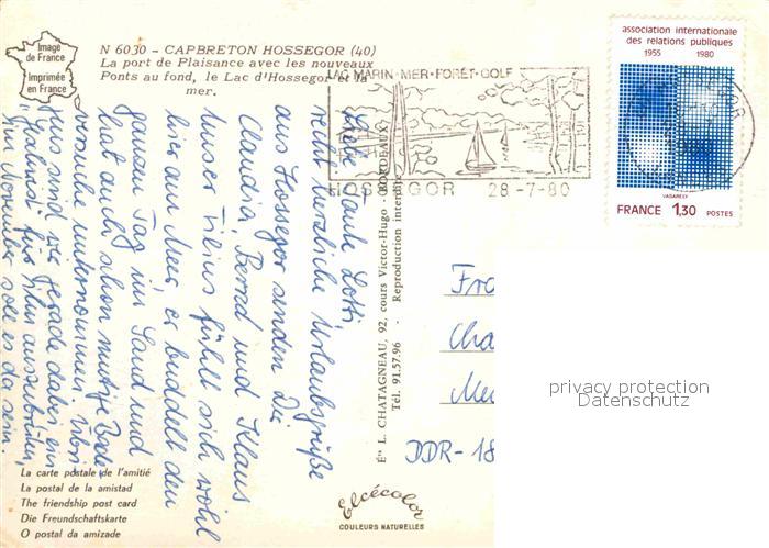 12846016 carte postale Capbreton Fliegeraufnahme Hafen postalisch gelaufen Erhaltung siehe scans [LiesaD40] KatCode: 11170040140065
