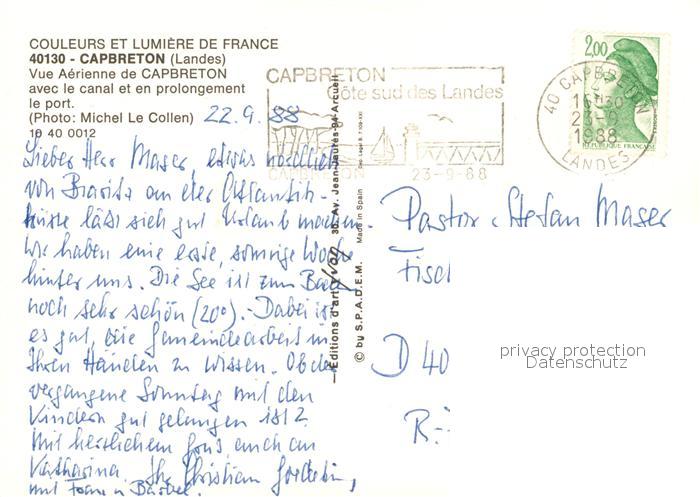 13317118 carte postale Capbreton Vue aerienne avec le canal et en prolongement le port postalisch gelaufen Erhaltung siehe scans [WerneD78] KatCode: 11170040140065