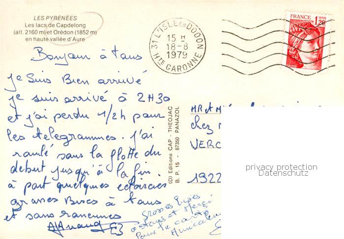 13835256 Capdelong Cap-de-Long Aragnouet 65 Hautes-Pyrenees Les lacs de Capdelong et Orédon Vallee d Aure postalisch gelaufen Erhaltung siehe scans [FriedD77] carte postale Frie Katcode 11170065265017