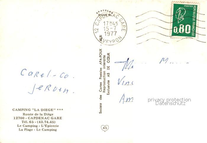 13236331 carte postale Capdenac-Gare Camping La Diege postalisch gelaufen Erhaltung siehe scans [FriedD77] KatCode: 11170012312052