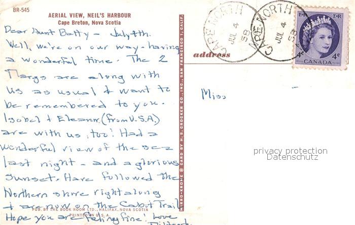 73130035 old postcard Cape Breton Fliegeraufnahme postalisch gelaufen Erhaltung siehe scans [KathaD81] KatCode: 14140