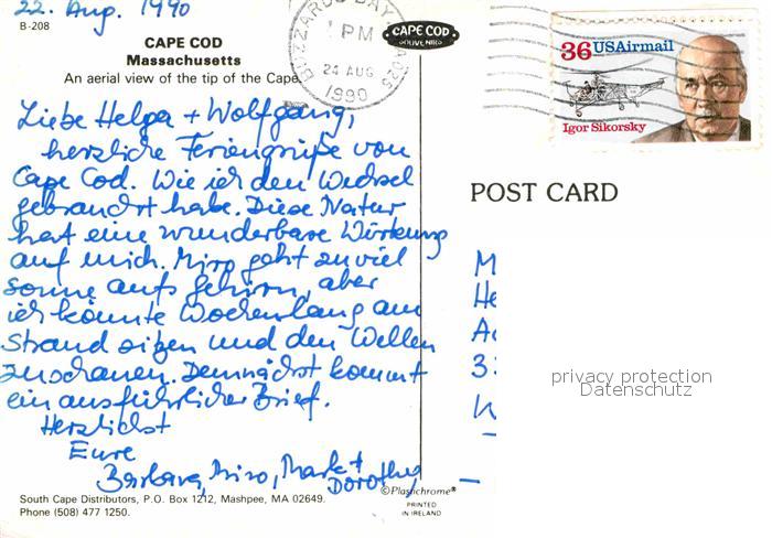 72863544 old postcard Cape Cod Mass. Aerial view of the tip of the Cape postalisch gelaufen Erhaltung siehe scans [FriedD77] KatCode: 14140