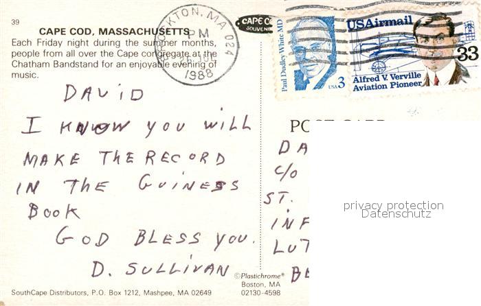 73131595 old postcard Cape Cod Mass. Concert postalisch gelaufen Erhaltung siehe scans [KathaD81] KatCode: 14140