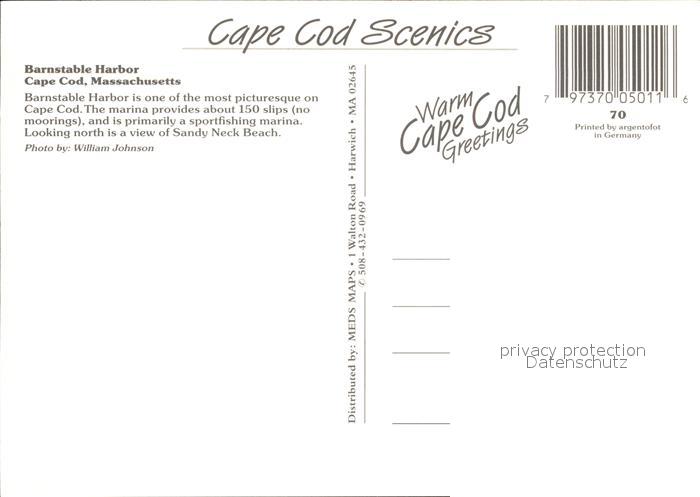 72555745 Cape Cod Mass. Fliegeraufnahme Barnstable Harbor postalisch nicht gelaufen Erhaltung siehe scans [AndreD76] KatCode: 14140