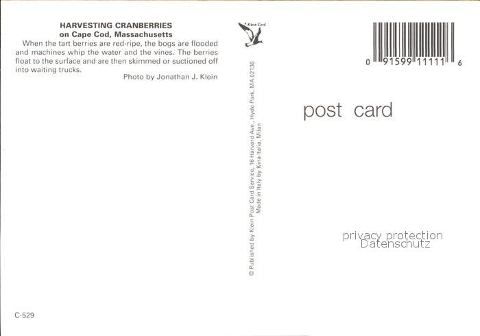 72555747 Cape Cod Mass. Harvesting Cranberries postalisch nicht gelaufen Erhaltung siehe scans [AndreD76] KatCode: 14140