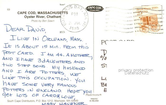 73130644 old postcard Cape Cod Mass. Oyster River Chatham postalisch gelaufen Erhaltung siehe scans [KathaD81] KatCode: 14140