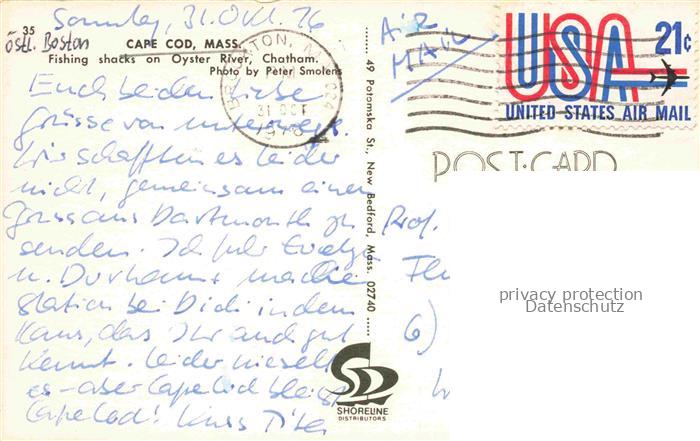 74128748 old postcard Cape Cod Massachusetts USA Fishing shacks on Oyster River postalisch gelaufen Erhaltung siehe scans [FriedD77] KatCode: 14140
