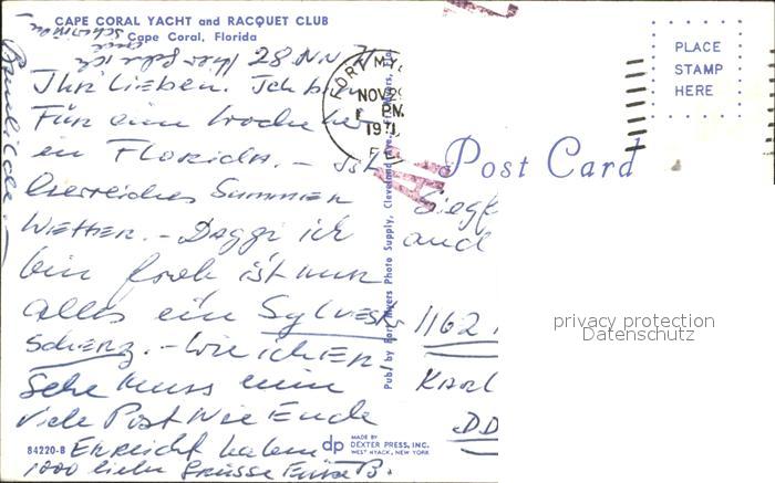 72060385 old postcard Cape Coral Yacht and Racquet Club postalisch gelaufen Erhaltung siehe scans KatCode: 14140110000000