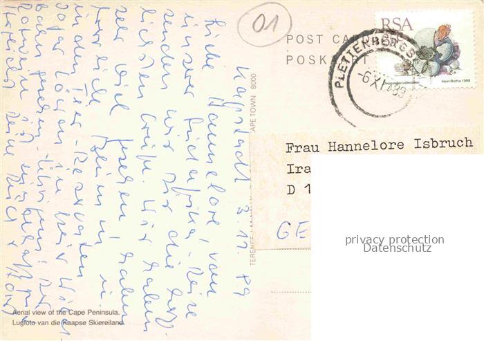 74091478 old postcard Cape Peninsula Cape Town Southafrica RSA Fliegeraufnahme postalisch gelaufen Erhaltung siehe scans [WerneD78] KatCode: 18460