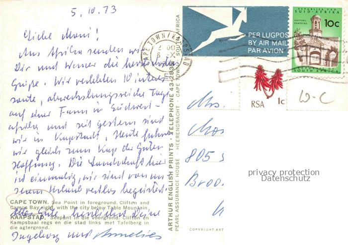 74092128 old postcard Cape-Town Kaapstad Kapstadt South-Africa RSA Fliegeraufnahme Clifton and Camoa Bay Table Mountain postalisch gelaufen Erhaltung siehe scans [WerneD78] KatCode: 18460