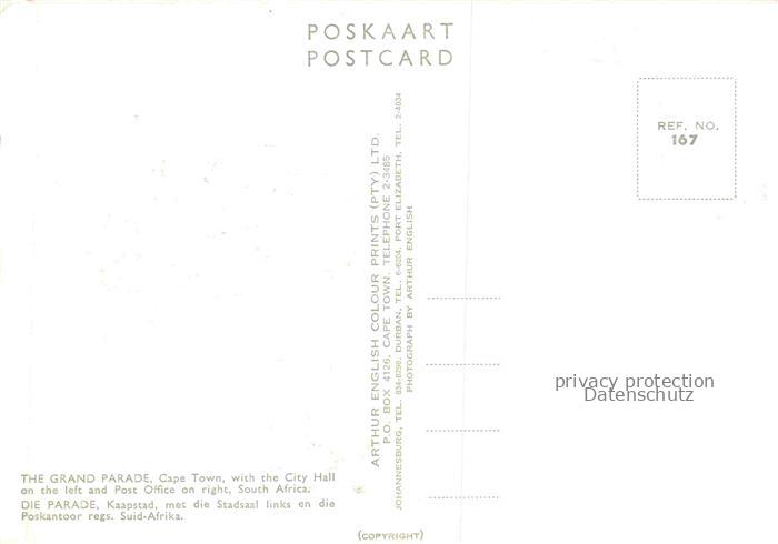 74012386 Cape-Town Kaapstad Kapstadt South-Africa RSA The Grand Parade with the City Hall on the left and Post Office on right postalisch nicht gelaufen Erhaltung siehe scans [WerneD78] KatCode: 18460
