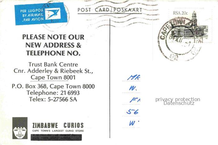 74091481 old postcard Cape-Town Kaapstad Kapstadt South-Africa RSA Zimbabwe Curios Store postalisch gelaufen Erhaltung siehe scans [WerneD78] KatCode: 18460
