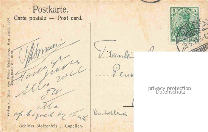 74126984 alte Postkarte Capellen KOBLENZ Rhein Rheinland-Pfalz Blick ueber den Rhein Schloss Stolzenfels postalisch gelaufen Erhaltung siehe scans [FriedD77] KatCode: 11110007111000