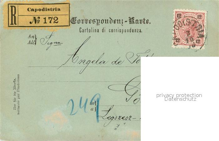 33708517 old postcard Capodistria Stadtturm Segelpartie postalisch gelaufen Erhaltung siehe scans [WerneD78] KatCode: 11500