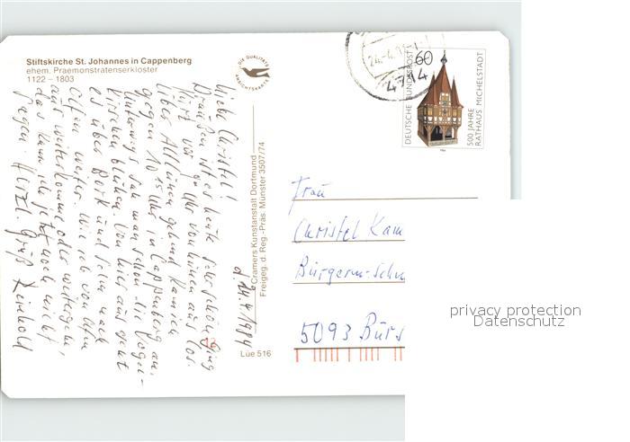 72078894 alte Postkarte Cappenberg Stiftskirche St Johannes Fliegeraufnahme postalisch gelaufen Erhaltung siehe scans KatCode: 11110005978032