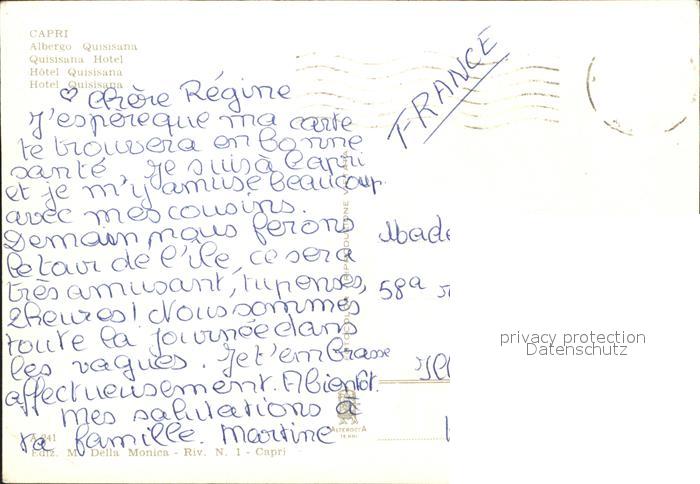 old postcard Capri Albergo Quisisana Hotel postalisch gelaufen Erhaltung siehe scans