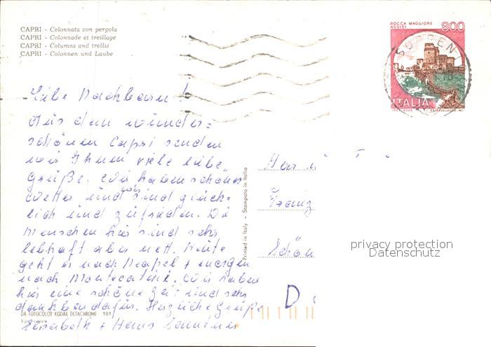 old postcard Capri Colonnata Lauben postalisch gelaufen Erhaltung siehe scans