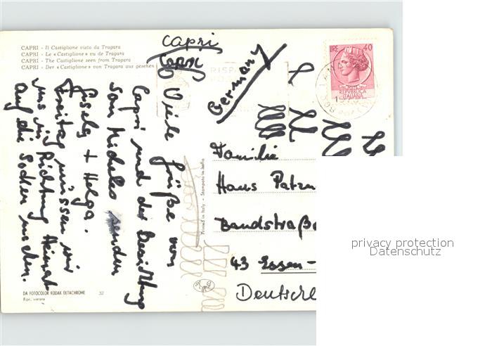 old postcard Capri Der Castiglione von Tagara aus gesehen postalisch gelaufen Erhaltung siehe scans